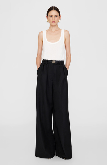 The wide-leg Lou Trouser is made from a light and breathable blend with a slight sheen.