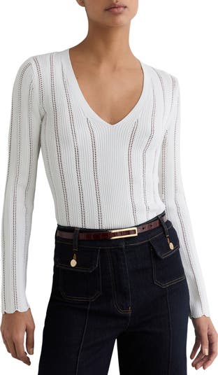 Openwork stitching lightens the aesthetic of this elegant top cut for a slim, figure-defining fit.