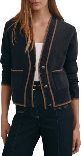 Knit from soft wool yarns kissed with cashmere, this polished tipped cardi features patch pockets and warming ribbed trim.