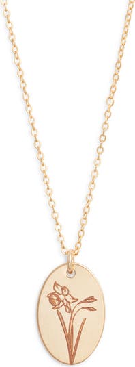 This giftable necklace crafted from 14-karat gold fill features a tag pendant engraved with birth flowers.