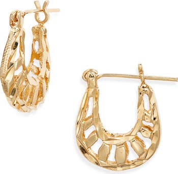These sun-inspired hoop earrings feature a glinting hammered finish plated in 24-karat gold.