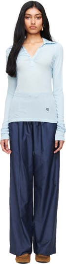 A collared Henley-style top with soft gathers over the bust and elongated sleeves for effortless layering under blazers. Finished with our signature ‘R’ embroidery.