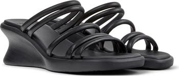 A curved wedge heel and tubular leather straps shape the intriguing silhouette of this comfortable sandal set on an extralightweight sole.