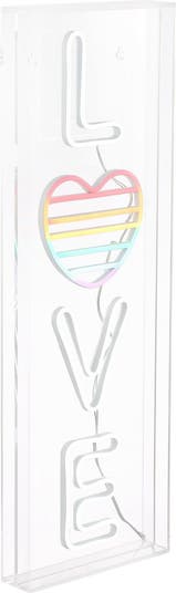 LOVE 8" X 24" Contemporary Glam Acrylic Box USB Operated LED Neon Light, White/Rainbow