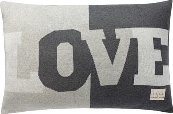 Show off your love for everyone in your home with this rectangular accent pillow in a colorblocked design.