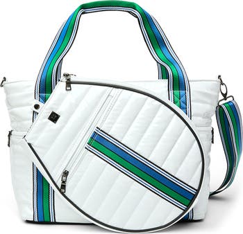 Pack for your weekend tennis trip with this all-season set that includes a sling for your racket and a roomy tote.