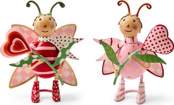 These two precious love bugs hold playful stemmed hearts and feature delicately dotted wings, bringing whimsy to any area of your home.