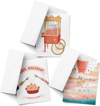 Love/Friendship Greeting Card Pack (3ct) "Balloon, Popcorn, Pasta"