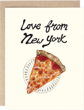 Made by artist Becca Gore in her illustration studio based in Chicago, Illinois, this NYC pizza-themed card comes with a recycled craft-paper envelope.