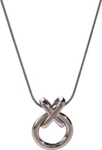 A pendant of hugs and kisses anchors this slinky chain necklace that exudes warmth and love.