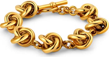 Hand-carved by New York artisans, the sculpted curves of this elegantly knotted bracelet catch the light in radiant 14-karat gold plate.