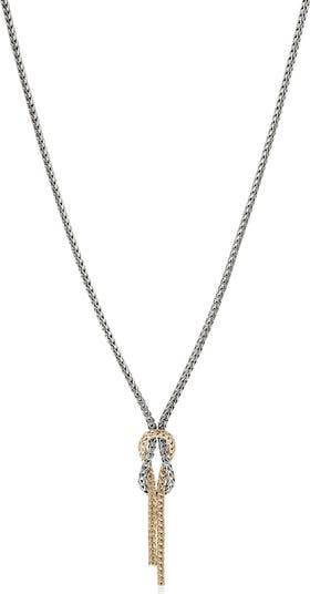 This delicate Y-necklace in 14-karat gold is centered by the signature Love Knot—a symbol of commitment, resilience and love.