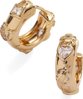 When you’ve got love and luck, you’ve got everything you need. These Love and Luck Huggie Hoops each have five crystal-accented lucky symbols: a horseshoe, a four-leaf clover, a ladybug, a lock and a sparkling heart. Wear them for a touch of good fortune, or combine them with other symbols that tell your story.