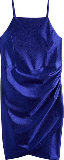 Princess seams shape a sophisticated party dress of glittery fabric with lots of stretch that's beautifully draped in a faux-wrap.