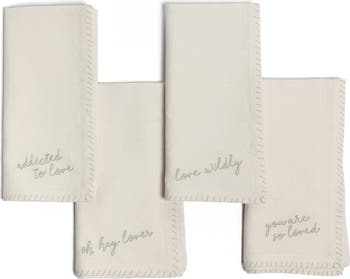 The host who opens their home, opens their heart. Each cotton-linen napkin reflects that sentiment with a sweet hand-embroidered love note in Purvi’s original handwriting. Finished with a matching gray whipstitch border. Set of 4.