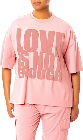 Love Oversize Split Hem Cotton Blend Graphic T-Shirt