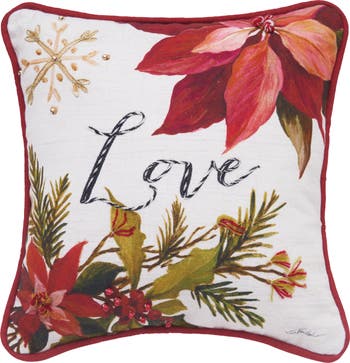 Love Poinsettia Small/Petite Christmas Accent Pillow, 10" x 10"