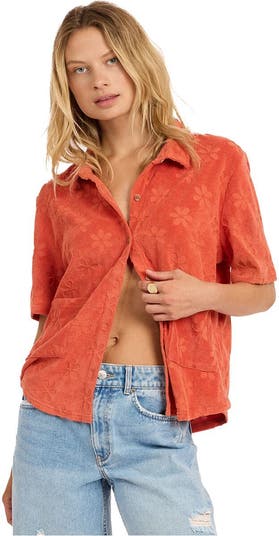 Some pieces just feel like summer, and the Love Struck Short-Sleeve Knit Top is one of them. With its soft, textured knit and laid-back fit, its our go-to for easy days that drift from the beach to town and back again. The button-up silhouette keeps things classic, while the floral jacquard adds a hit of retro charm. We love throwing it on over a swimsuit, tying it up with high-rise denim, or letting it flow loose for an effortlessly styled vibe. Whether worn as a set with the matching High Tide Knit Pant or mixed into our everyday lineup, its the kind of shirt that always finds a spot in our weekender bag.
