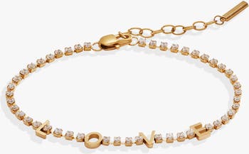 Four little letters tell an entire love story. This “Love” Tennis Bracelet features letter charms that spell out “LOVE,” set inline in an adjustable-length crystal tennis bracelet. Gift it to someone you love, or wear it as a reminder that with an open heart, love will always find you. Because it’s gold-tone stainless steel, it’s durable and scratch-resistant so you can wear it on repeat.
