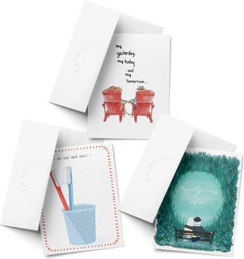 Love/Valentine's Assorted Greeting Card Pack (3ct) "Adirondack Chairs Couple, Toothbrush, Happily ever after"