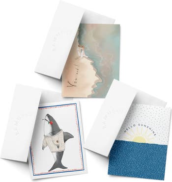 Love/Valentine's Assorted Greeting Card Pack (3ct) "Beach Walk, Sharky Love, Hello Sunshine"