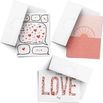 Love/Valentine's Assorted Greeting Card Pack (3ct) "Love Chat, Love Day, Sunshine Valentine"