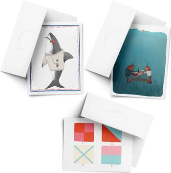Love/Valentine's Assorted Greeting Card Pack (3ct) "LOVE Nautical Flags, Sharky Love, Lobster Date"