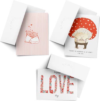 Love/Valentine's Assorted Greeting Card Pack (3ct) "Piggies, Mushroom, Love Day"