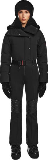 The LOVE by RUDSAK is a women's fitted one-piece ski suit designed for both performance and style. Featuring a luxurious faux fur shawl collar, it boasts a technical stretch exterior with a cozy polar inner finish for warmth and flexibility. Quilted knee panels, vegan leather trims, and a removable vegan leather waist belt add a chic edge. With hip pockets, zippered ski pass storage on the sleeve, and back-opening zippers on the legs with reinforced inner kick panels, it offers convenience and durability. Equipped with RECCO rescue technology for added safety, the LOVE ski suit blends fashion and function effortlessly.