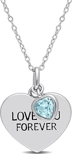 Express your eternal love with this enchanting Gemstone LOVE YOU FOREVER Heart Pendant Necklace. A vibrant, heart-shaped gemstone—symbolizing warmth, harmony, and everlasting love—takes center stage, radiating its fresh brilliance. Encased in a lustrous sterling silver setting, the pendant is delicately inscribed with LOVE YOU FOREVER, making it a heartfelt gift for someone special. This timeless piece is a beautiful reminder of love that lasts a lifetime.