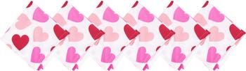 Fall in love with the Love You More printed table linens. Featuring a delightful repeating pattern of pink and red hearts on a white backdrop, these table linens provide a simple yet loving touch for decorating a tabletop on Valentine's Day. Complementing these linens is a simple striped pattern in coordinating shades of pink and red, adding to the romantic ambiance.