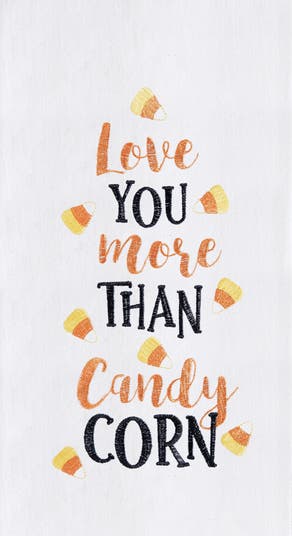 Love You More Than Candy Corn Cotton Embroidered Halloween Flour Sack Kitchen Towel