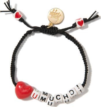 Spread some amor with our Love You Mucho Bracelet! Crafted with black threadwork and ceramic charms, this bracelet will add a touch of love and charm to any outfit.