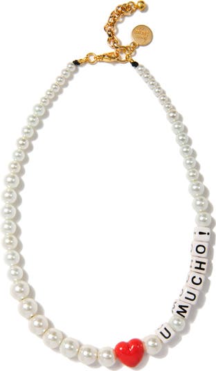 Spread some amor with our Love You Mucho Pearl Necklace! Uniquely crafted with crystal pearls and ceramic charms, this necklace will add a touch of love and charm to any outfit.