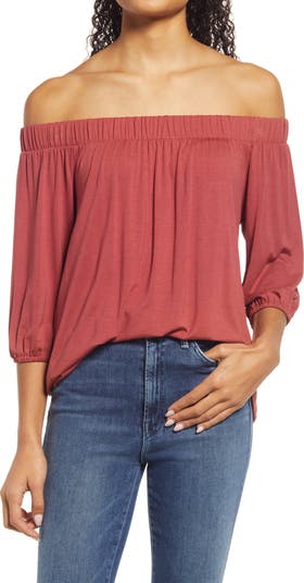 Show off your shoulders in this breezy top, styled with abbreviated sleeves and a roomy fit.