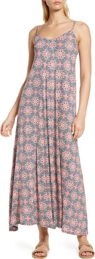 Paisley plays in a pretty way across this flow-fitting stretch-knit maxi that's just right for summery days and warm nights.