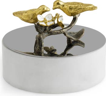 Michael Aram's meticulous craftsmanship and nature-focused inspiration lend a touch of sophisticated whimsy to a small box designed to hold trinkets and precious memories within.