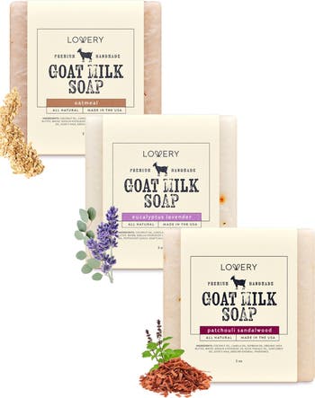 Lovery Handmade Goat Milk Soap Bars Made in USA - Variety Scent - 3 Pack, Main, color, Oatmeal, Lavender, Sandalwood
