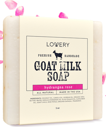 SOAP MADE WITH REAL ORGANIC GOAT MILK - Our goats milk soap bar selection is wonderfully blended with soothing scents and ingredients to nurture your skin the natural way. Each batch of goat soap is made using real organic goat milk. All natural bar soap producing a creamy, delicate lather. ORGANIC SHEA BUTTER & RICH NATURAL OILS – Hormone-free organic goat's milk soap made with organic Shea Butter, along with luxurious plant-based oils from coconut, soya, and olive. This rich goatmilk soap blend is deeply nourishing and leaves hands feeling silky smooth and clean. MOISTURIZING HAND SOAP FOR SENSITIVE SKIN - A goat milk soap bar containing REAL goat milk, not powdered. Our goat milk hand soap is carefully handcrafted for sensitive skin care and moisturization. It gently hydrates and soothes dry or itchy skin without the harsh chemicals. SOOTHING & RELAXING SCENTS - Our goats milk bar soap is handmade and available in 5 exquisite scents: Oatmeal, Eucalyptus Lavender, Moroccan Vanilla, Hydrangea Rose, and Patchouli Sandalwood. All scents contain a base of ground oatmeal in the soap for gentle exfoliation. HANDMADE WITH LOVE IN THE USA - Every bar of our soap is crafted by hand right here in the USA, with lots of love and care. We're proud to bring you a product that's great for your skin, and also homegrown. Lovery is dedicated to creating luxurious, natural skincare products that nourish your body and soul.
