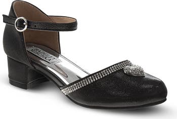 Add a touch of sparkle and shine to your little one's special occasions with these adorable Little Kids' dress shoes! Featuring a charmingly low heel for all-day comfort, these shoes are perfect for weddings, parties, holidays, or any special event! The closed-toe design offers a polished look, while the adjustable buckle closure ensures a secure fit. But the magic is truly in the details: sparkling rhinestones adorn the shoes, and a sweet heart-shaped detail on the front adds a touch of whimsy.