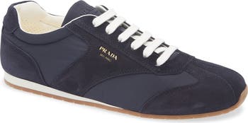 A streamlined, low-profile upper set on a thin, lightweight sole defines this minimally detailed sneaker crafted in Italy from panels of supple suede and nylon.