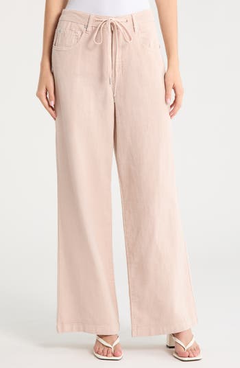 Made of an airy cotton-and-linen blend, these low-rise pants boast a casual drawstring waist and wide legs.