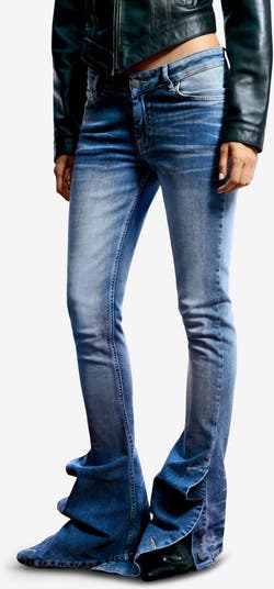 Buttoned cuffs and extralong hems give casual appeal to these faded jeans cut from stretch-kissed denim.
