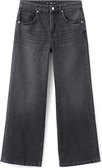 A clean look for casual days, these nonstretch jeans feature a throwback low-rise waist and full-length wide legs.
