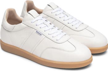 Keep your weekend style on point with this low-top sneaker featuring sleek monochrome leather composition.