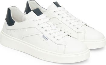 Subtle perforations and contrasting accents define an Italian-made low-top sneaker shaped from rich leather and grounded by a classic cupsole.
