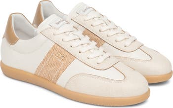 Contrast stripes amplify the sporty style of this go-to lace-up sneaker fashioned from smooth leather.