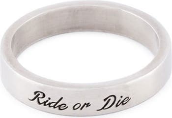 Show some loyalty with this stackable band ring crafted from sterling silver and given dimension with a unique text design.