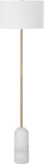 This beautiful floor lamp with a marble base is topped with a smooth linen lampshade and adds understated light and elegance to any room.