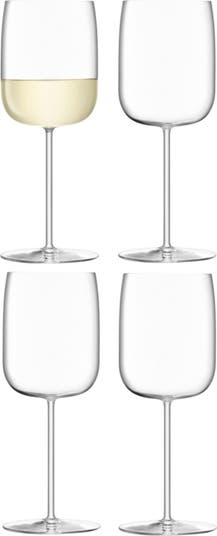 Square-like bowls add a modern look to slender-rim, long-stem wine glasses crafted from brilliant and durable crystalline flex glass.